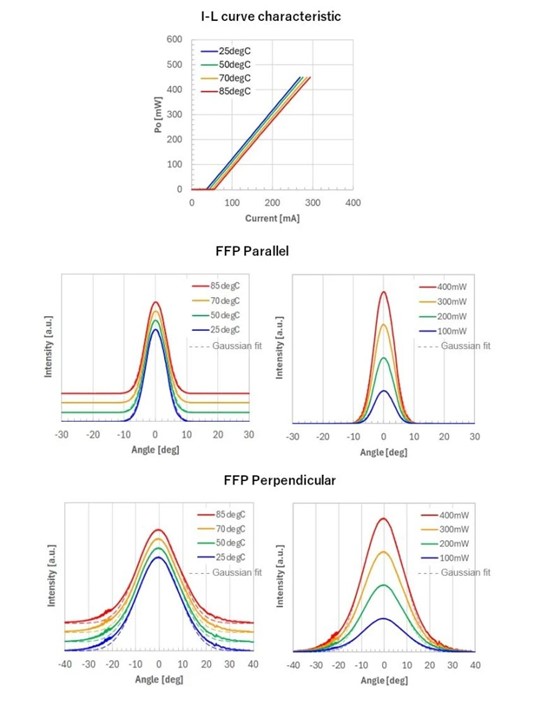 2024 年 12 月,Ushio 開始批量出貨 HL40213MG 單模激光二極管(LD),該產品在 405nm 波長范圍內具有行業最高的 400mW 輸出功率,具有穩定的束質量,工作溫度范圍寬(-5℃~85℃)。2025 年 3 月,我們還計劃提供同系列HL40211MG 的樣品,該 LD 內置光電二極管(PD),用于監測光學輸出功率。