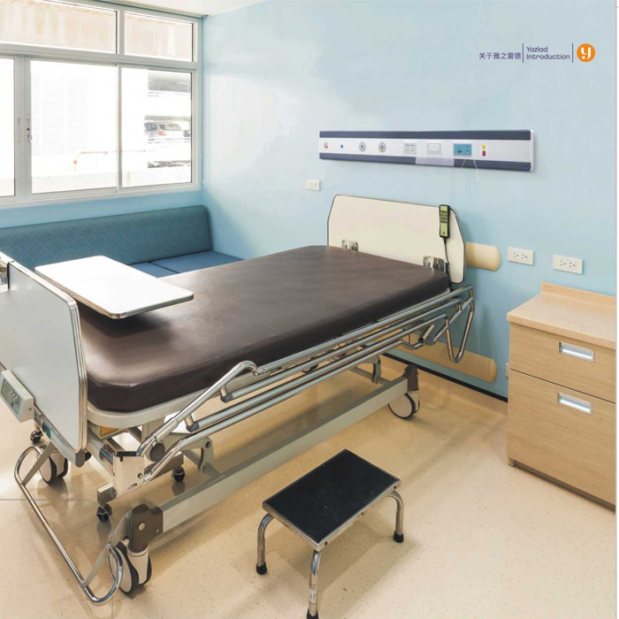 ?每床標(biāo)配護(hù)眼LED閱讀燈、氧氣、 負(fù)壓終端、開關(guān)各1個(gè),十孔插座 2個(gè);
