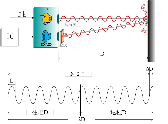 ITOF通過發射一束調制的連續激光信號,當這束激光照射到目標物體后反射回來,接收器會捕捉到反射信號,并與發射信號進行比較,通過計算兩束信號之間的相位差來確定目標物體的距離。